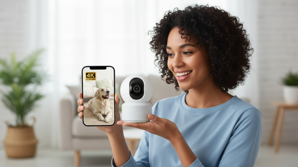 2) Anona Pano 4K UHD Indoor Camera, Pet/Dog/Baby Security Camera with Phone App, 360° Pan-Tilt… Privacy Mode, Two-Way…